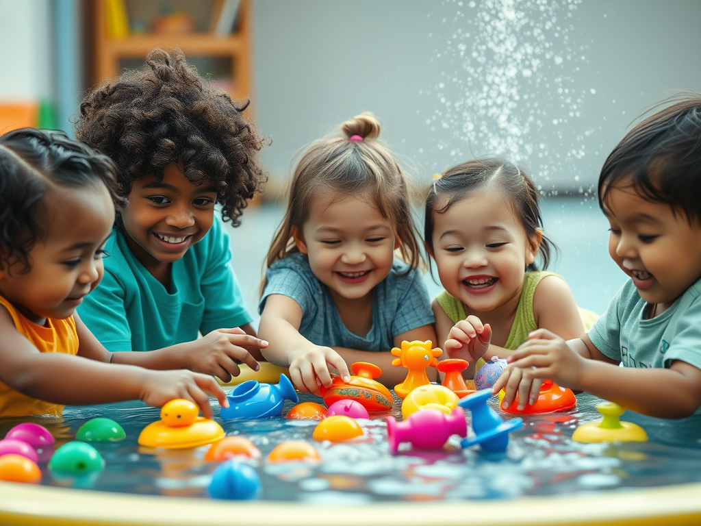Water Bin with Floating Toys: Includes water, small floating toys, and scoops to develop motor planning and coordination during play.